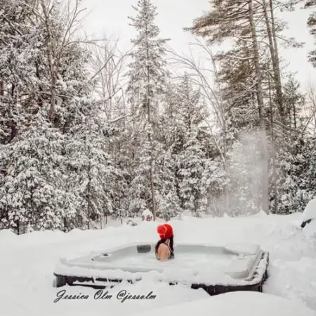 Jessica Olm and her apres ski hot tub in Adirondack Mountains