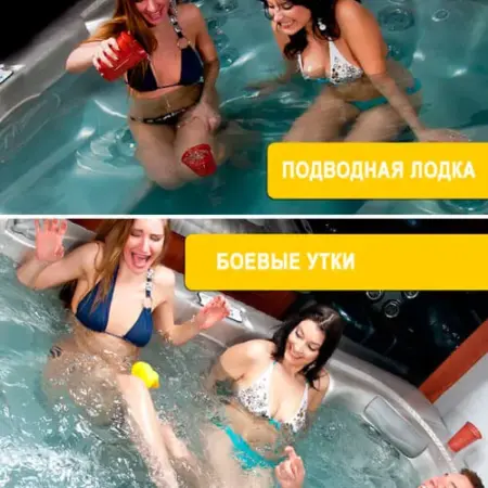 Все что вам потребуется — две резиновые уточки. Смысл игры в том, чтобы ваша утка успела коснуться одного из игроков противоположной команды, прежде чем их утка успеет коснуться вашего игрока. Начните с разделения купальщиков на две команды. Тогда дайте каждой команде утку. Когда игра начинается, каждая команда должна расположить свою утку в воде спа бассейна. Чтобы усложнить условия игры, достаточно включить напорные насосы джакузи, и попытка пересечь это бурное море будет гораздо труднее, чем кажется. Конечно, чем больше вы понимаете как управлять потоками в вашем джакузи, тем больше у вас шансов на победу.
