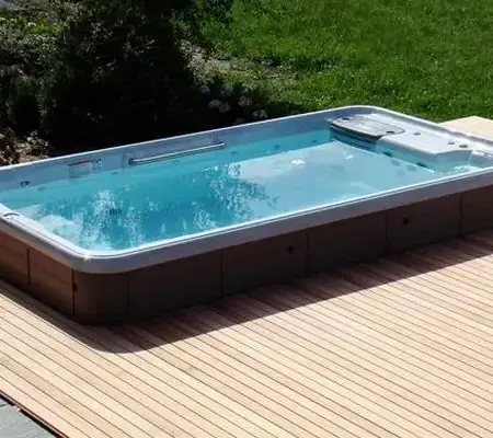 Вы можете купить удобную в использовании готовую площадку для уличного Спа. Такой вариант является прекрасной альтернативой заливке бетона и бетонному основанию бассейна с противотоком на улице. Это позволяет быстро установить бассейн. И при этом уложиться в совсем небольшой бюджет.