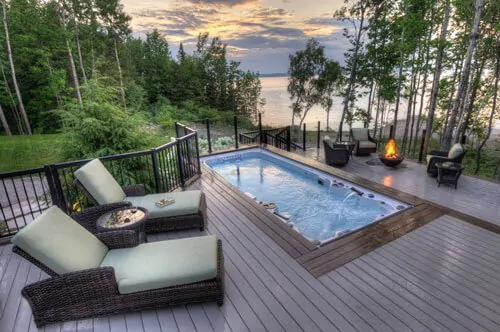 Терраса и плавательный спа бассейн Терраса и плавательный спа бассейн — как установить свим спа Уличный плавательный бассейн на террасе. Роскошь или необходимость? Терраса и плавательный спа бассейн с противотоком