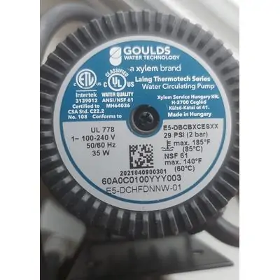 Оригинальный насос E5 для гидромассажных ванн джакузи и спа бассейнов Jacuzzi. Он одобрен европейским и американским объединением производителей спа бассейнов и джакузи. Сертификат ESV180553. Обратите внимание! Мы знаем, что на рынке сейчас активно продают неутвержденный китайский вариант этого насоса с более низкими характеристиками.