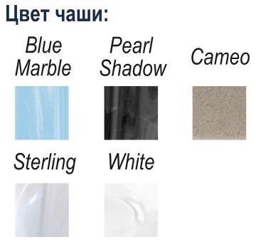 - Цвета чаши встраиваемого джакузи: Pearl Shadow, Cameo, Sterling, Blue Marble, White
