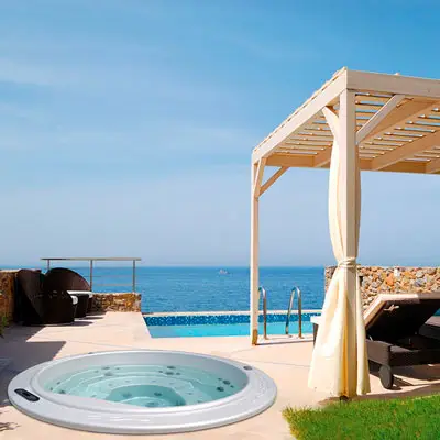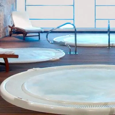 Круглый джакузи часто становится спутником плавательного бассейна. Он отлично дополнит спа комплекс отеля с турецкой баней, хамамом, сауной или русской парной. Гидромассажная ванна спа Round 2— гордость испанского производителя оборудования для отелей, фитнес центров и санаториев Aquavia Spa. Большое количество форсунок позволяет каждому клиенту выбрать интересную программу гидротерапии. Все оборудование джакузи расположено отдельно в техническом помещении. Для идеального качества воды рекомендуем приобрести и установить озонатор