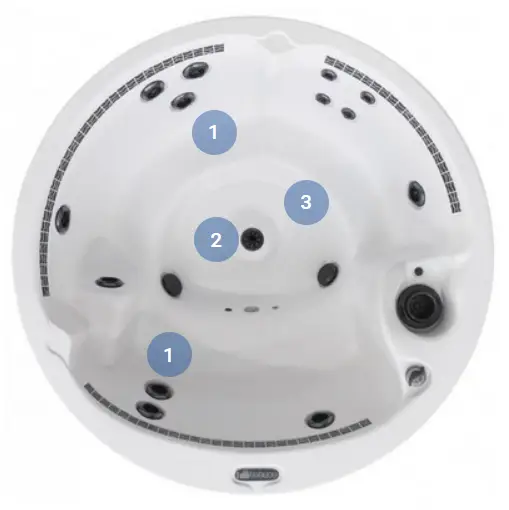 2. Боковой гейзер Тайфун. Мощный гейзер для спортивного массажа. Давление воды струи гейзера максимально допустимое для этого класса оборудования — 2 атмосферы. Поток создает дополнительное круговое движение воды в джакузи. Это придает спа бассейну особое сходство с природным термальным источником.