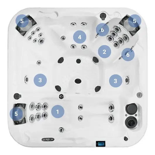 Зоны массажа и типы шезлонгов Спа бассейна Dimension One Spas Chairman