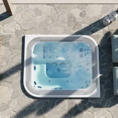 Спа бассейн Jacuzzi Virtus поможет вашим клиентам насладиться прекрасным массажем в компании 6-7 друзей, поднять настроение, по-настоящему расслабиться и отдохнуть. Мастер шезлонг по длинной стороне бассейна и классические безбарьерные гидротерапевтические сидения позволяют варьировать сценарии использования бассейна практически до бесконечности.