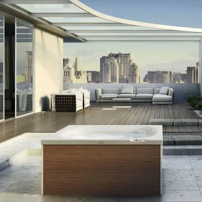 Теплые оттенки тика Jacuzzi Virtus добавят в монохромный интерьер спа центра загородного клуба необходимый цвет. Вы можете заказать и приобрести этот встроенный спа бассейн в разной цветовой гамме. Для поклонников современного минимализма разработчики предусмотрели наружную отделку Graphite.