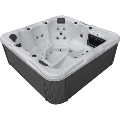 Спа бассейн на 5 мест Detroit Waterwave Spas для дома и улицы. Ложе по длинной стороне мини бассейна и 5 массажных шезлонгов лицом друг к другу позволяют с комфортом разместить семью с детьми или вас и ваших гостей. Разумеется, такая планировка идеально отвечает запросу семейного номера отеля или загородного клуба.