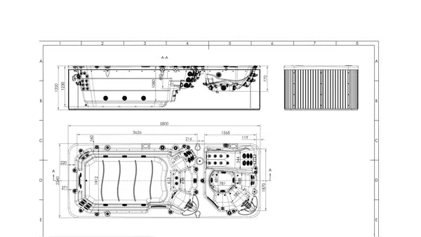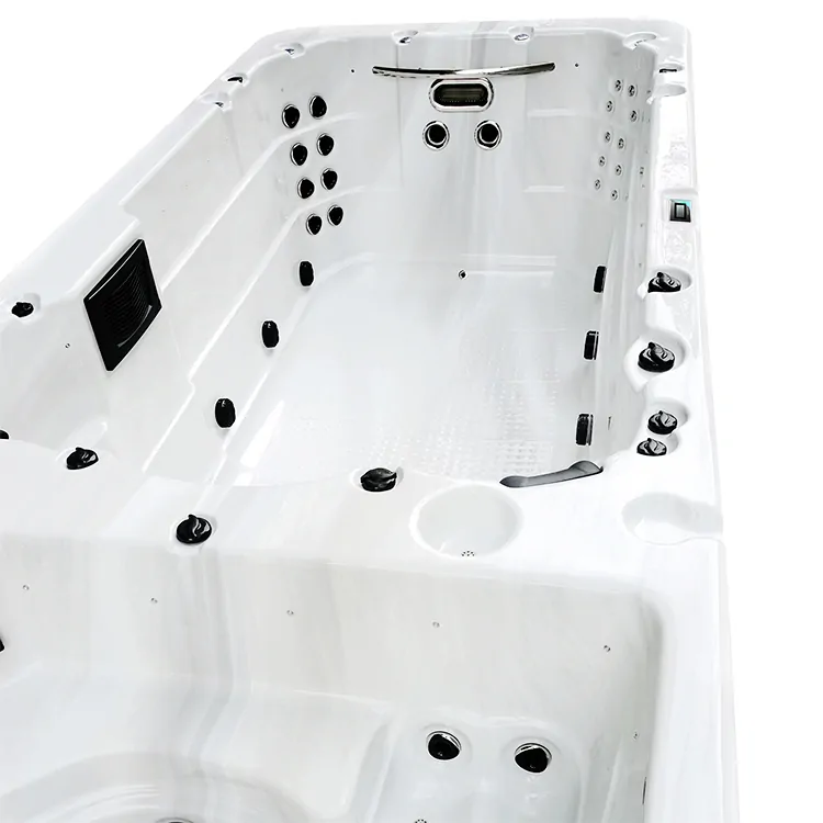 Спа бассейн с противотоком сочетает в себе длинный плавательный отсек и отдельную зону джакузи спа для релаксации и гидротерапии. Плавательный отсек бассейна - это «бесконечная» зона для тренировок.