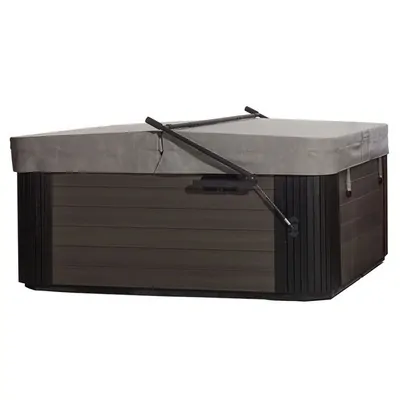 Гидравлический подъемник крышки джакузи «Невидимка» VisionLift. Новинка рынка аксессуаров для джакузи и мини бассейнов спа. Этот механизм подъема крышки джакузи не будет препятствовать обзору. VisionLift от компании UltraLift полностью скрывает крышку чехол от взглядов купальщиков и убирает ее за бассейн. Крышка при этом касается пола веранды или террасы. Лифт «Невидимка» VisionLift включает в себя двойные амортизаторы и удобную ручку. Именно она позволяет открывать или закрывать мини бассейн спа. Ручки располагаются с обеих сторон крышки чехла джакузи симметрично.