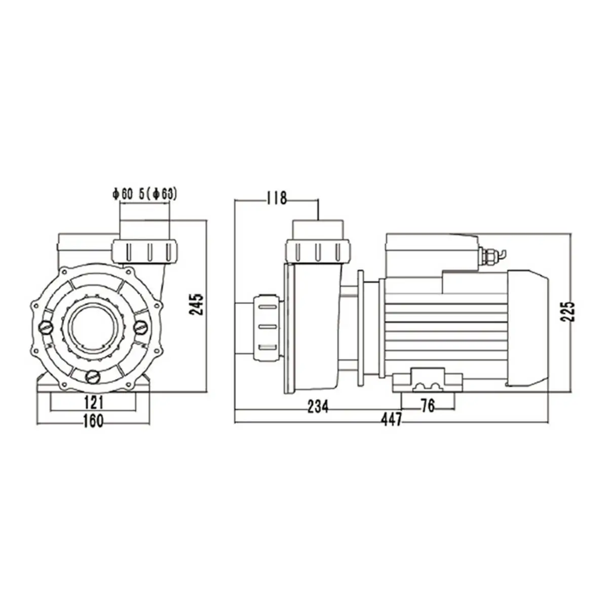 Разработан для бассейнов спа и уличных джакузи большого объема. Применяется в бассейнах, где требуется хорошая производительность и мощный напор струи.