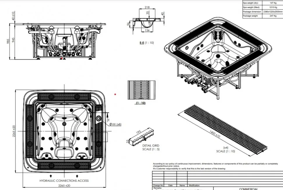 Переливная встраиваемая гидромассажная ванна спа AstralPool, Fluidra (Испания) Verona квадратная 226 х 226, 5 мест, песочный фильтр, купить для коммерческого использования в аквапарке, фитнес центре, отеле или гостинице, загородном клубе или в частном доме.